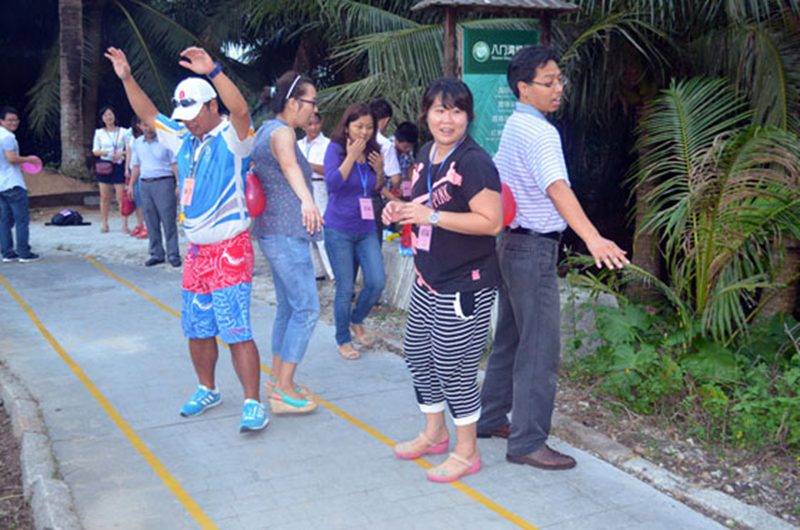 本次活动,得到省教育工会、海南师范大学工会、海南医学院工会和中国热带农业科学院工会的大力支持。参加联欢的人员通过抽签分成若干小组,参与“快速组合”、“同步雀跃”和“共同背负”等游戏竞赛活动,在穿越八门湾五公里红树林栈道后决出胜负,现场颁奖。