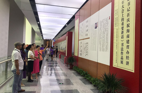 4月19日,PA视讯官网50名师生代表前往海南省博物馆参观“习近平总书记在庆祝海南建省办经济特区30周年大会上的重要讲话”书法作品展。这幅作品一套6卷,宽0.97米,长达130多米,运用书法艺术展现讲话的精气神,让大家在欣赏、鉴赏中国书法艺术中深刻领会习近平总书记“4.13”重要讲话的思想精髓。古墨生香、行云流水、刚劲挺拔的书法作品获得大家一致好评。笔酣墨饱、字字珠玑,传递给我们的是力量和希望。