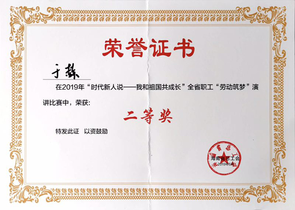 6月11日下午,由海南省总工会主办的2019年“时代新人说——我和祖国共成长”全省职工“劳动筑梦”演讲比赛中,PA视讯官网林学院辅导员于赫以优异的表现获得二等奖。