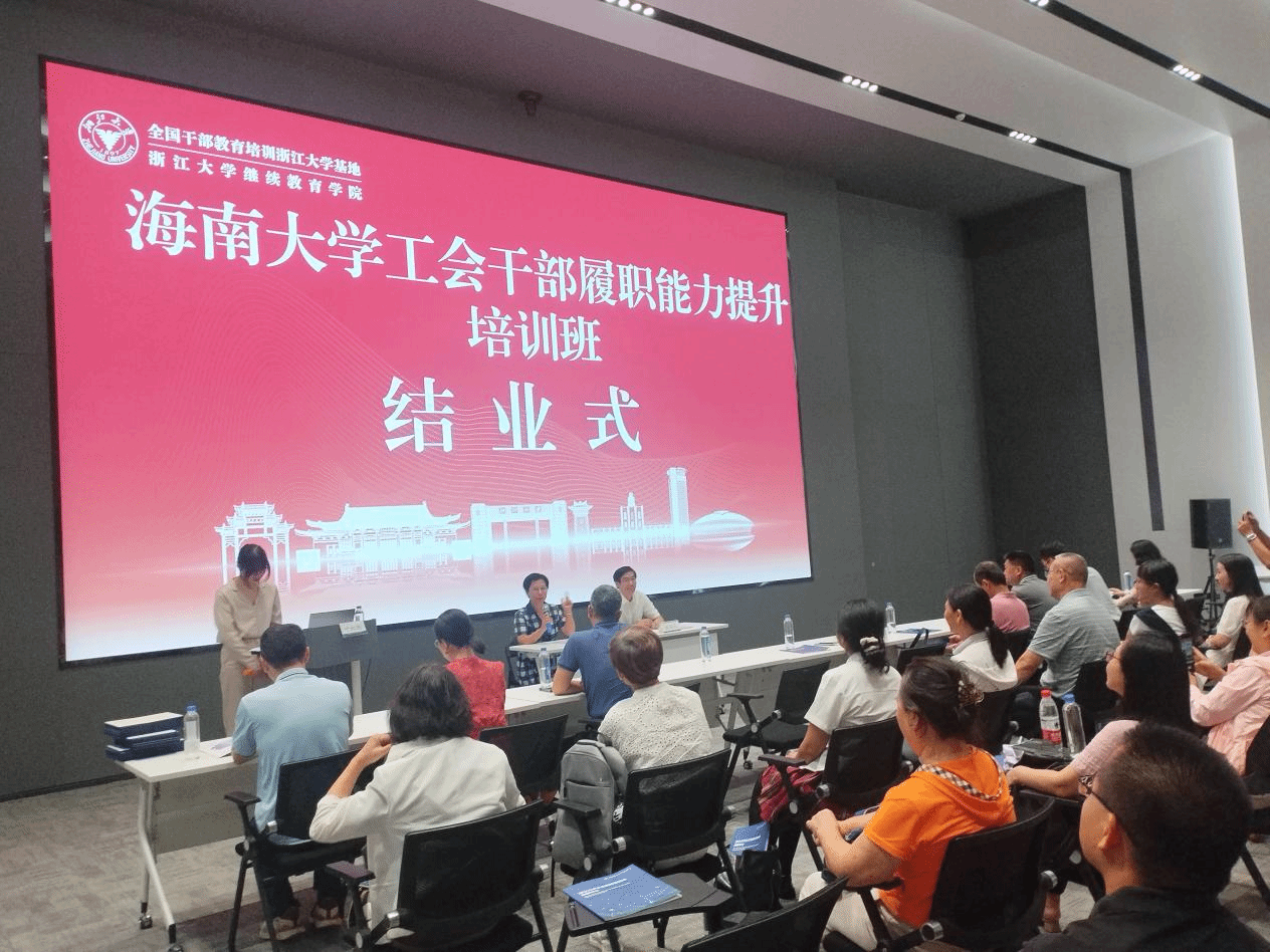 在结业仪式上,杨红同志作了培训总结发言,要求全体学员坚持理论联系实际的学风,做到学以致用,切实把培训成效转化为干事创业的强大动力和促进工作高质量发展的实际举措,为推动学校“双一流”建设贡献更多工会力量。她还向承办本次培训的浙江大学有关领导和工作人员表示衷心的感谢。浙江大学原党委常委、统战部长、工会主席楼成礼同志向学员们表示祝贺,希望培训助力大家在各自工作岗位上发挥更大作用,为学校多作贡献,并祝愿PA视讯平台越办越好。杨红和楼成礼还向学员们颁发了结业证书。
