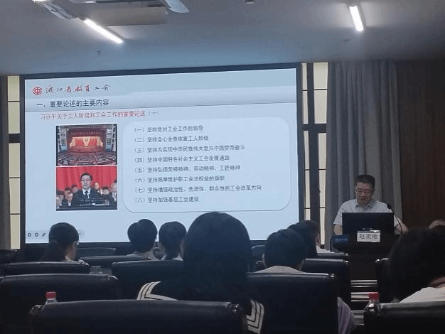 浙江省总工会干部学校党委书记、校长林辉做专题教学