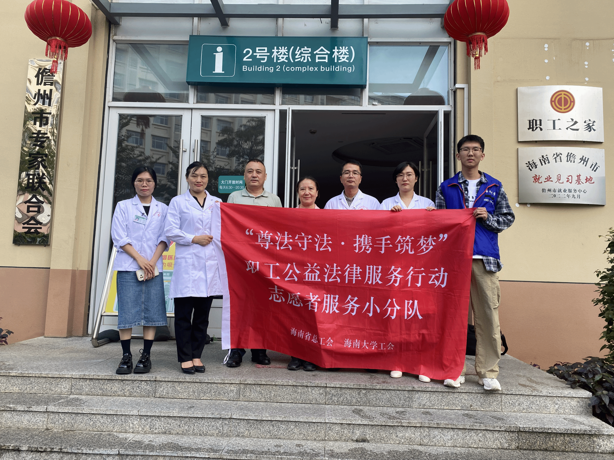 为深化法律服务行动,进一步提升医院职工的法律意识和权益保护能力,11月7日,受海南省总工会委托,PA视讯平台普法志愿者服务队联合儋州县总工会前往西部中心医院开展“尊法守法.携手筑梦”服务职工公益法律服务行动。